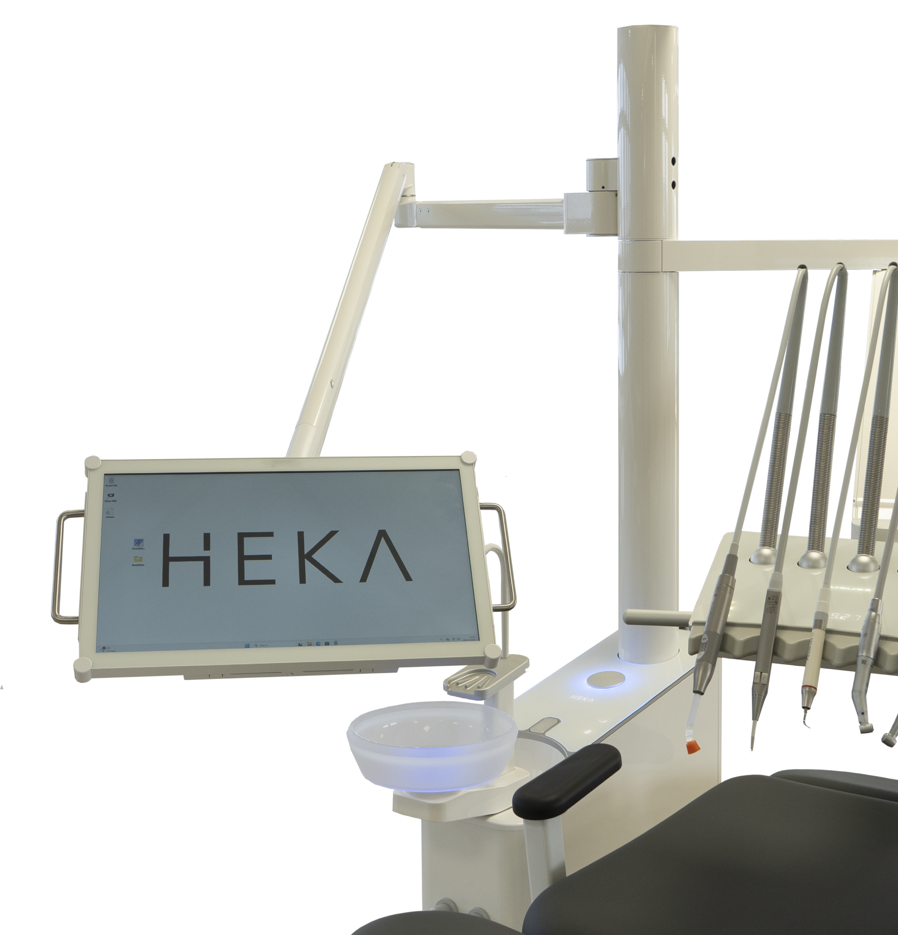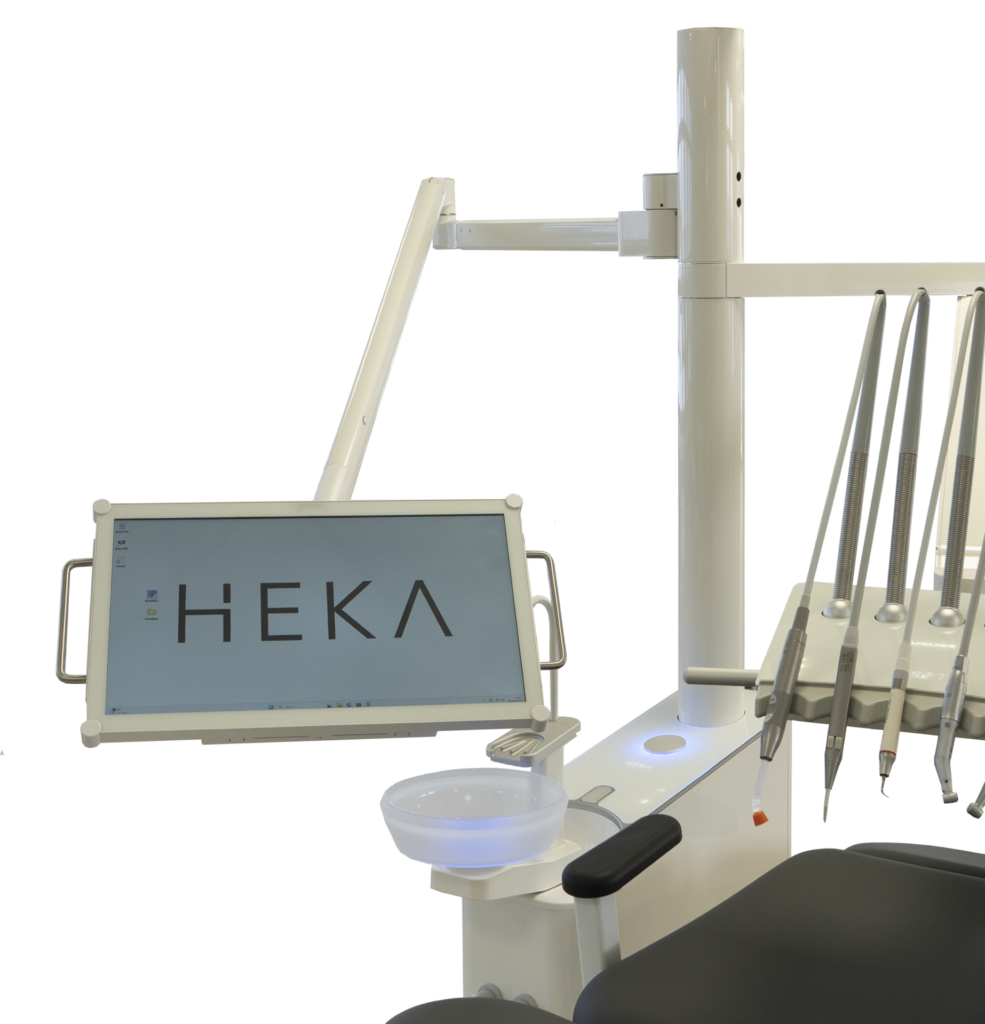 All surfaces of the Heka S+ are smooth and we have used tempered black glass edition on the delivery tray and console top, which is the most hygienic surface available. The display and touch keys can of course be made inactive during cleaning, which adds security and makes it easier to keep surfaces clean.