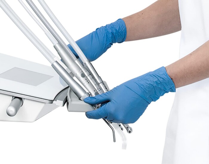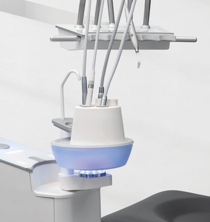 The aluminium handles, instrument cover and spittoon bowl can be easily removed for cleaning, and with several sets of these, you can easily switch between patient treatments.