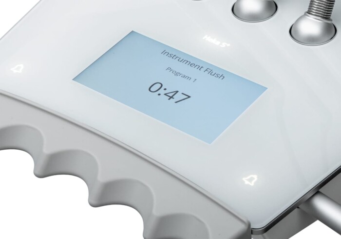 The Heka S+ can be supplied with automatic instrument water flushing. This ensures that the water system, tubes and instruments are flushed through and ready for the next patient – quickly and easily.