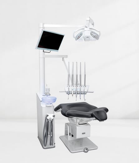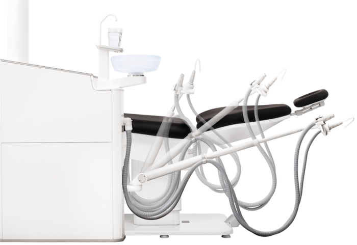 Some choose to combine the dental care unit and patient’s chair into one locked dental care unit. The disadvantage with this, however, is that you are then unable to freely design your practice and position the dental care unit and patient’s chair individually in relation to each other.